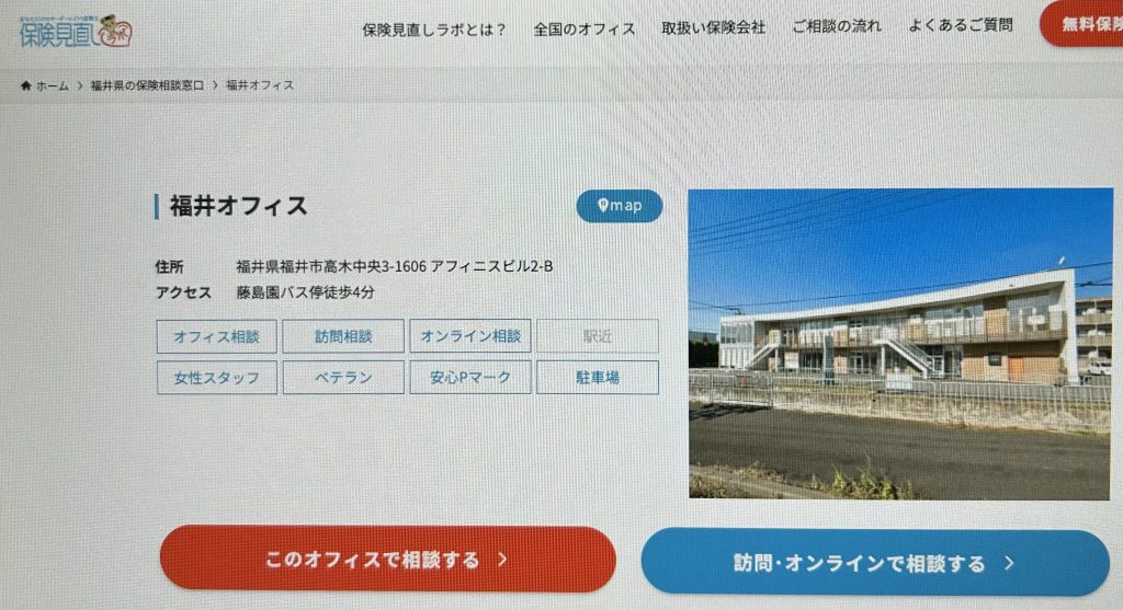 福井市内で近隣に位置する保険相談窓口があり、セカンドオピニオンとしての活用もおすすめです。