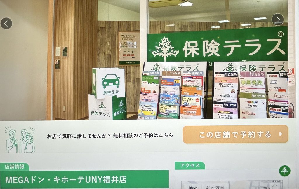 保険テラスは福井市内に「MEGAドン・キホーテUNY福井店」と「アピタ福井大和田店」の2店舗があります。