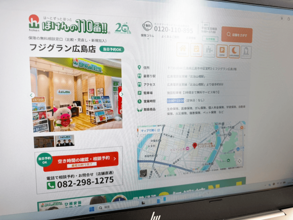 参照元:保険見直し本舗 イオンモール広島祇園店、保険見直し本舗 ラクア緑井店