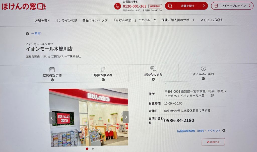 ほけんの窓口は一宮市内に「一宮店」と「一宮尾西店」、「イオンモール木曽川店」の3店舗を構えています。