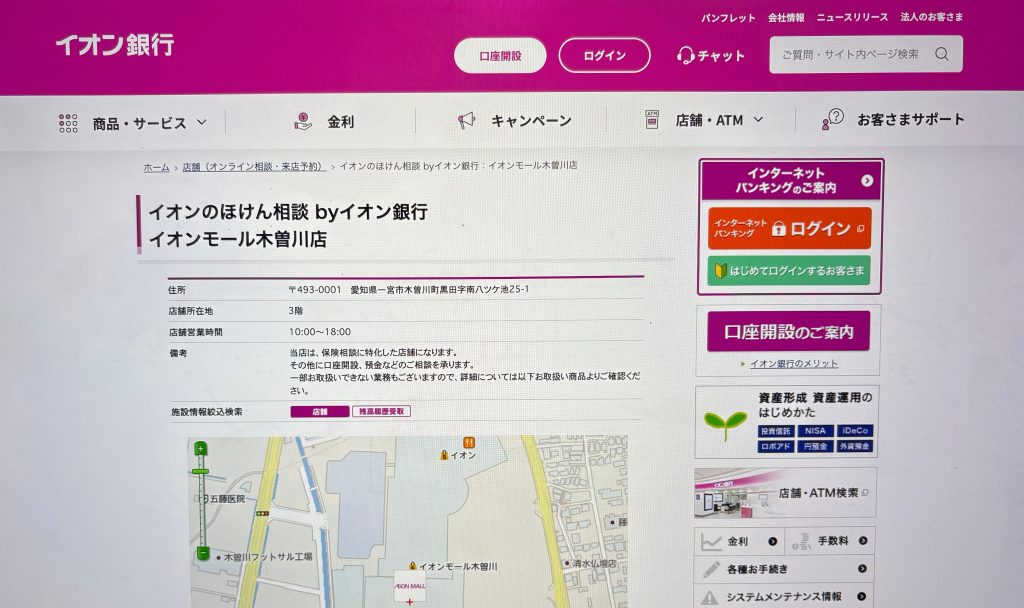 参照元:イオンのほけん相談 byイオン銀行 イオンモール木曽川店
