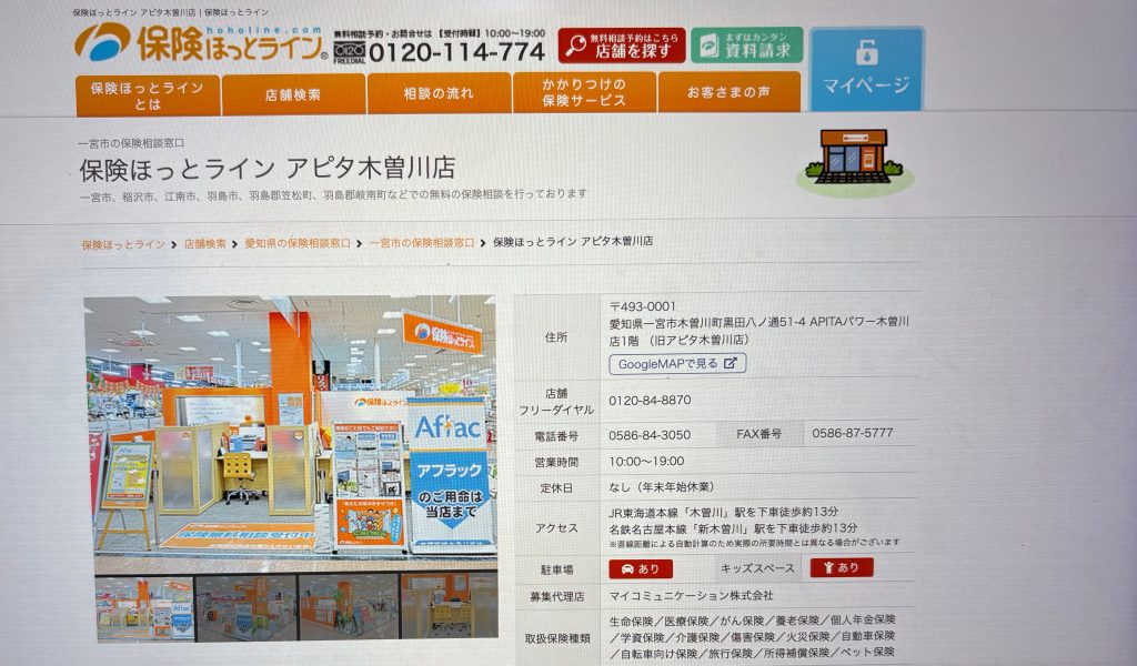 参照元:保険ほっとライン アピタ木曽川店