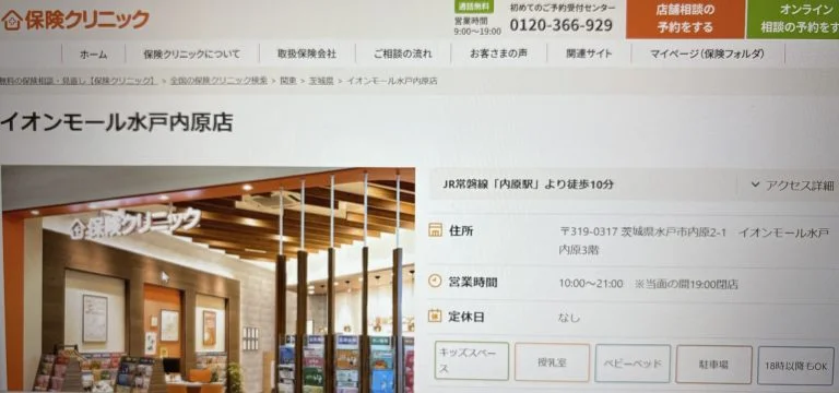 保険クリニック イオンモール水戸内原店は、JR常磐線「内原駅」から徒歩10分の場所にあるアクセス良好な保険相談窓口です。