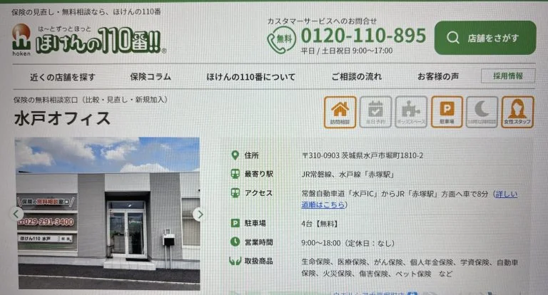 ほけんの110番 水戸オフィスは、50社の保険会社と提携している保険相談窓口です