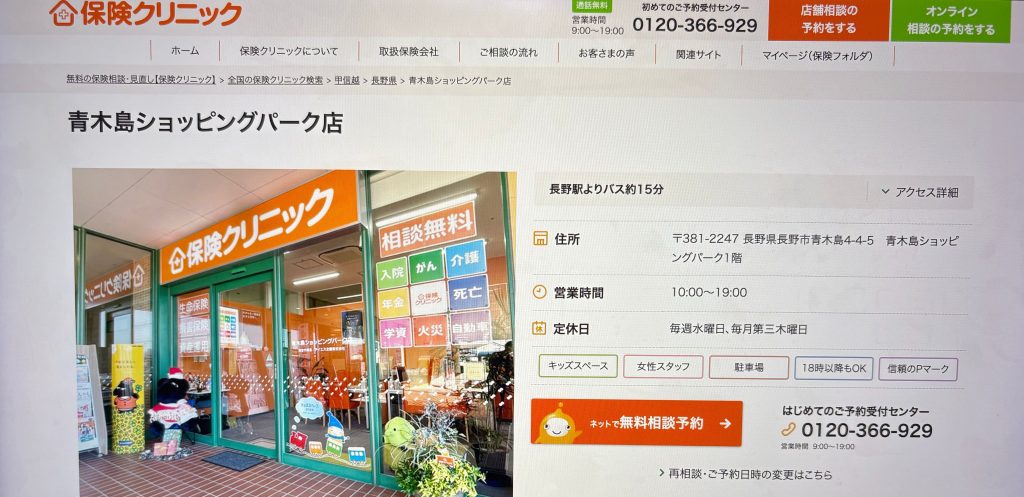 保険クリニック 青木島ショッピングパーク店は、「長野駅」よりバスで約15分の場所にある保険相談窓口です。