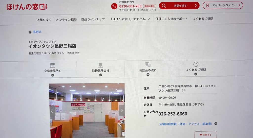 長野市には、ほけんの窓口が2店舗(イオンタウン長野三輪店・長野川中島店)あります。
