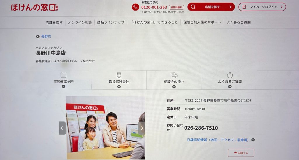 ほけんの窓口 長野川中島店は、JR「今井駅」から徒歩約15分の場所にある保険相談窓口です。