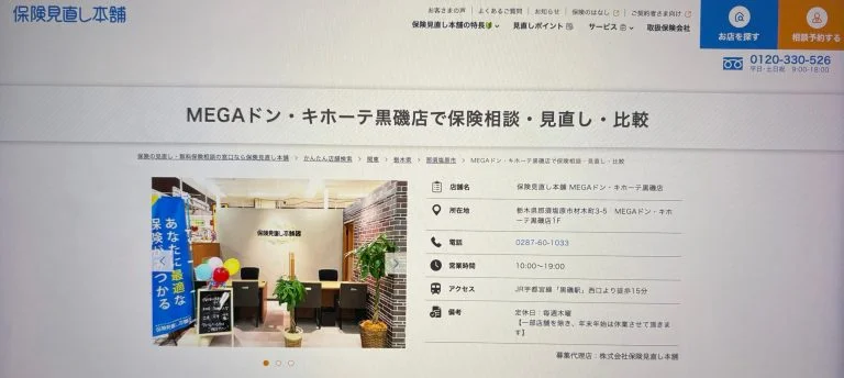 参照元:保険見直し本舗 MEGAドン・キホーテ黒磯店