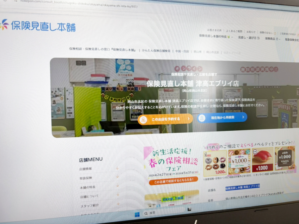ほけんの窓口は岡山市北区内にイオンモール岡山店」「岡山大元店の2店舗あります。