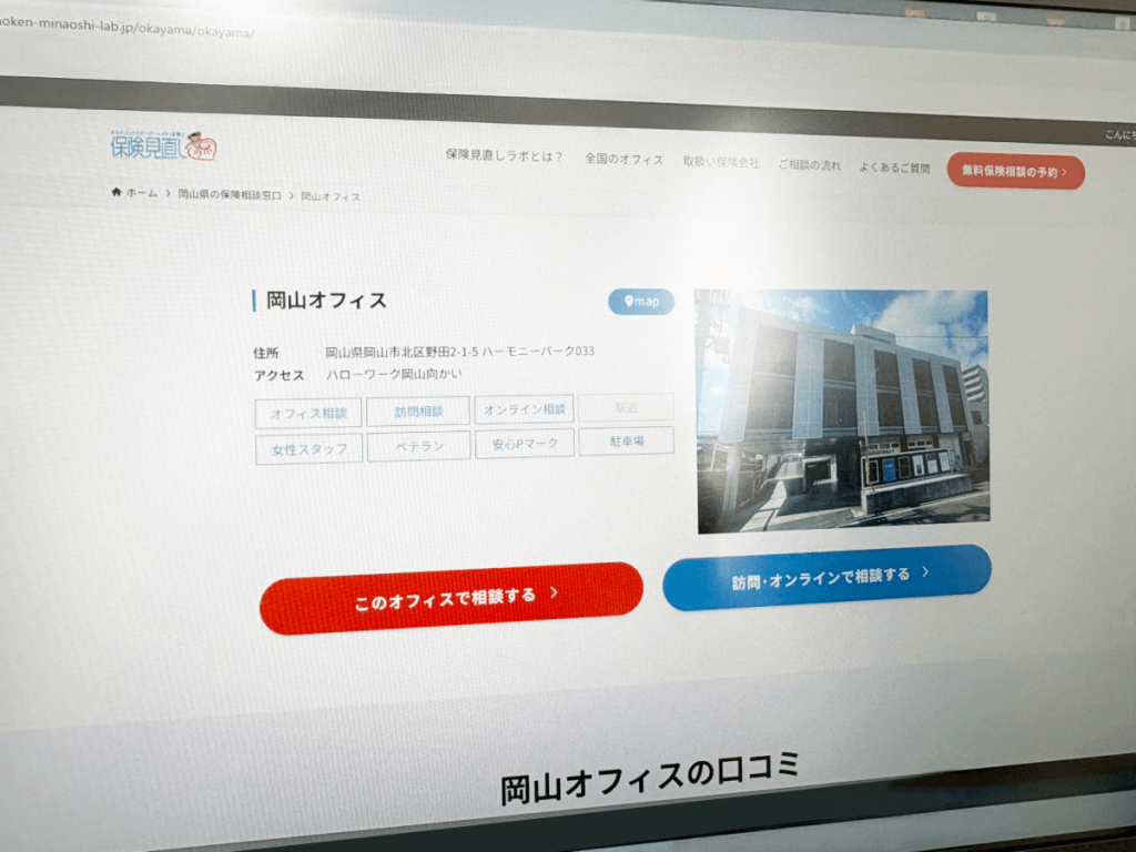 保険相談窓口保険見直しラボ 岡山オフィス保険見直し本舗 津高エブリイ店ほけんの窓口 イオンモール岡山店ほけんの窓口 岡山大元店家計の見直し堂 岡山市役所前店ライフプラザパートナーズ 岡山FA営業部