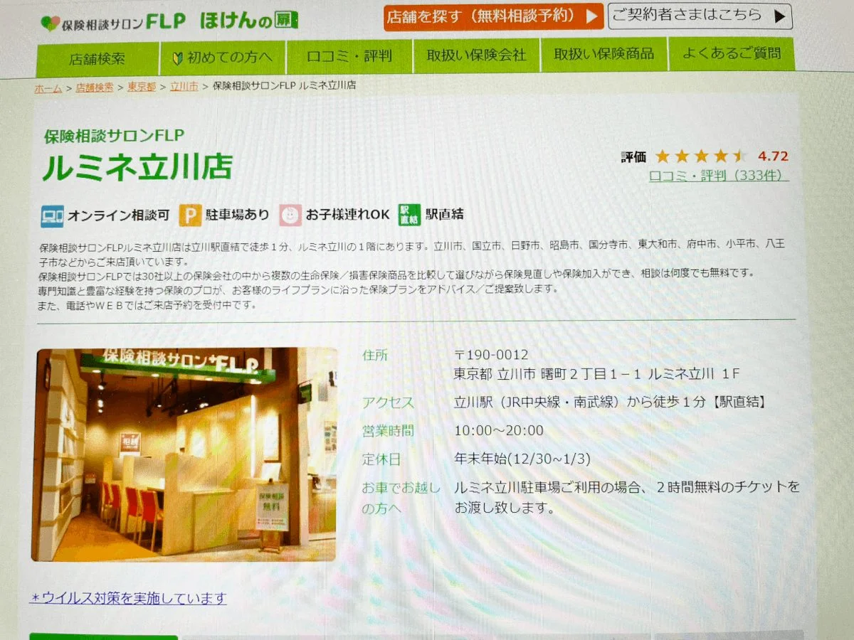 | 保険相談窓口 | 保険見直しラボ 立川オフィス | 保険見直し本舗グランデュオ立川店 | 保険クリニック立川フロム中武店 | ほけんの窓口立川支店 | 保険相談サロンFLPルミネ立川店 |