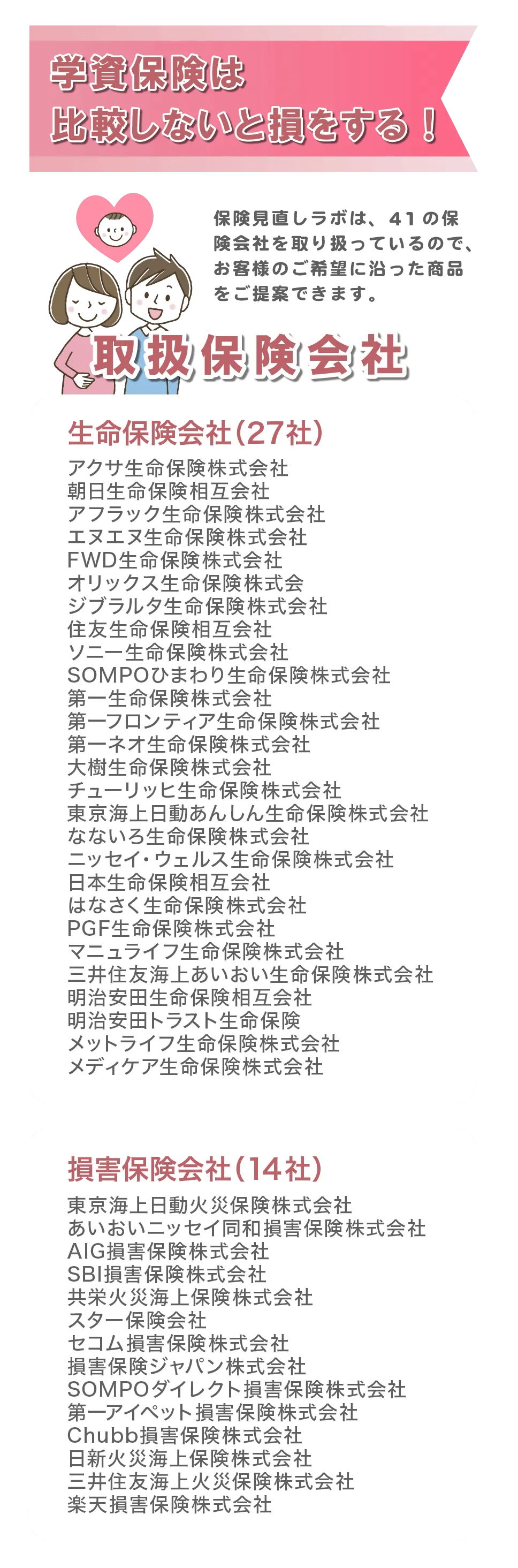 ※保険契約は同一内容であれば、代理店で契約されても、保険会社(保険会社の営業職員)から契約されても、保険料は変わりません。
